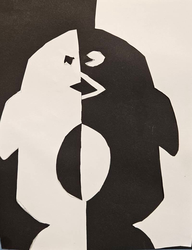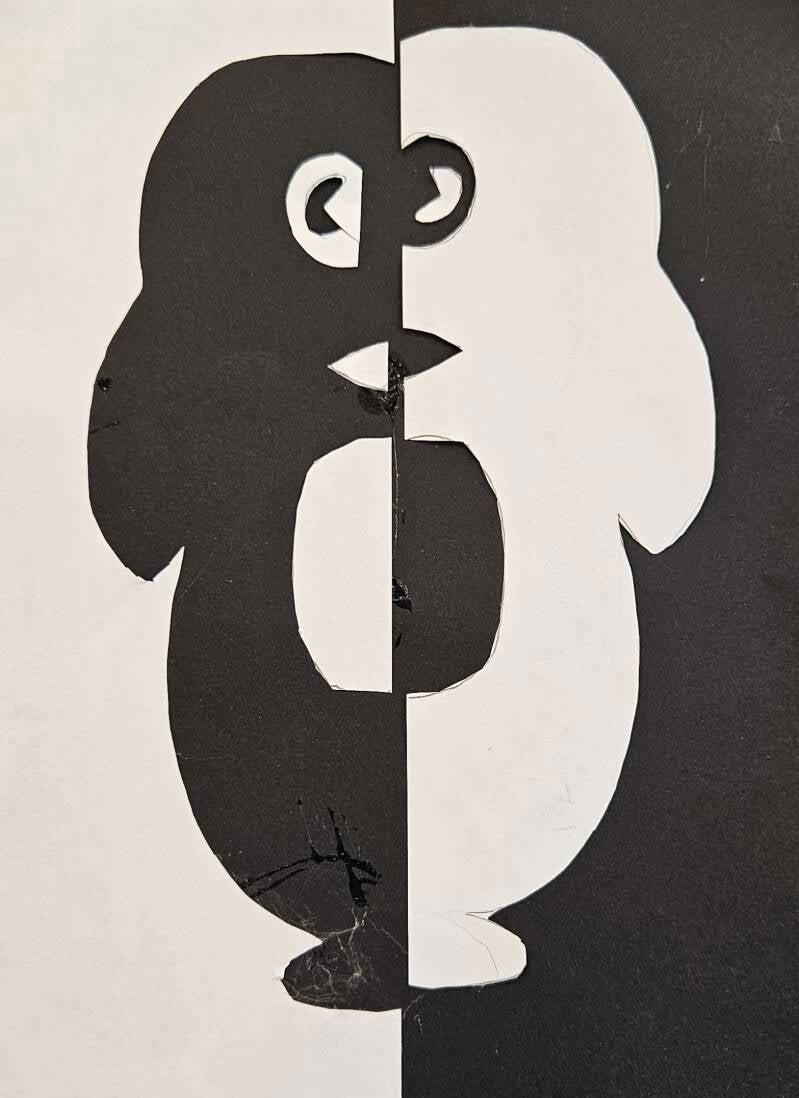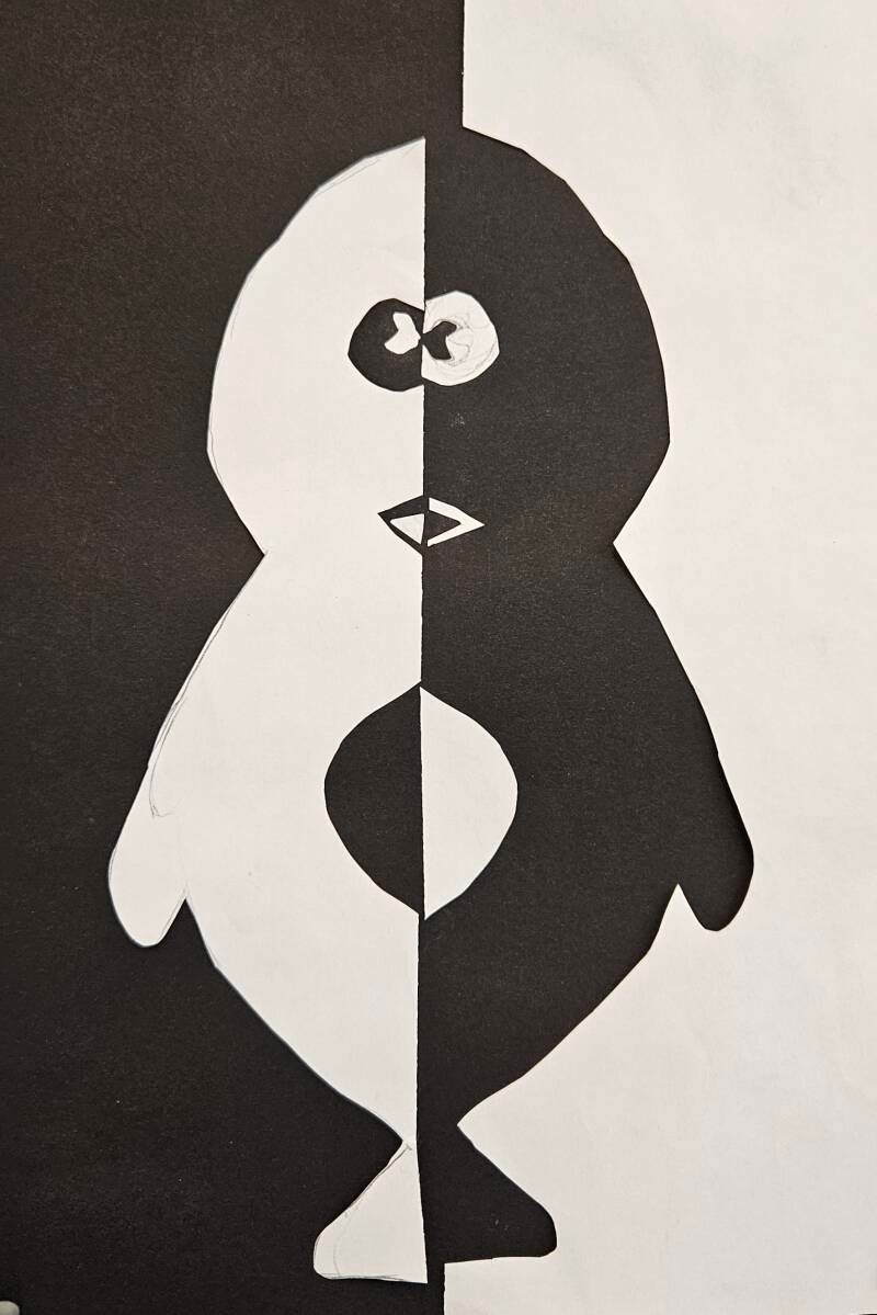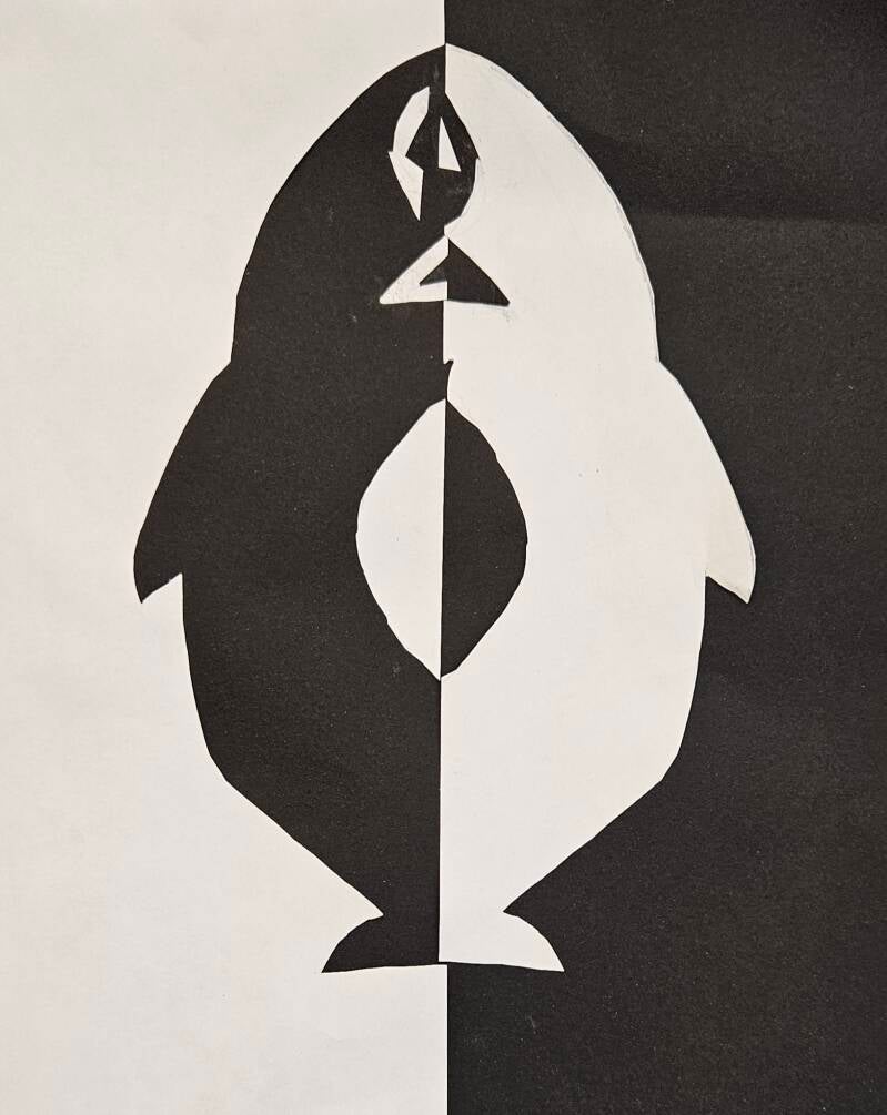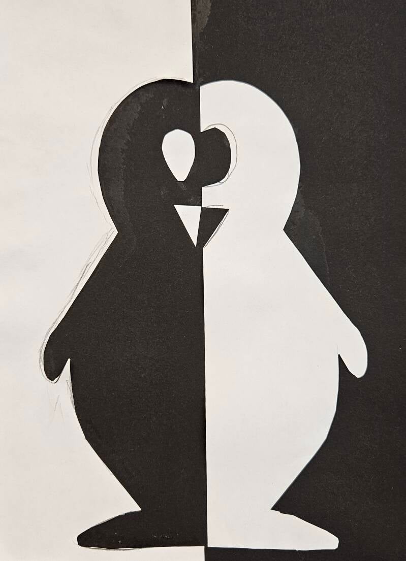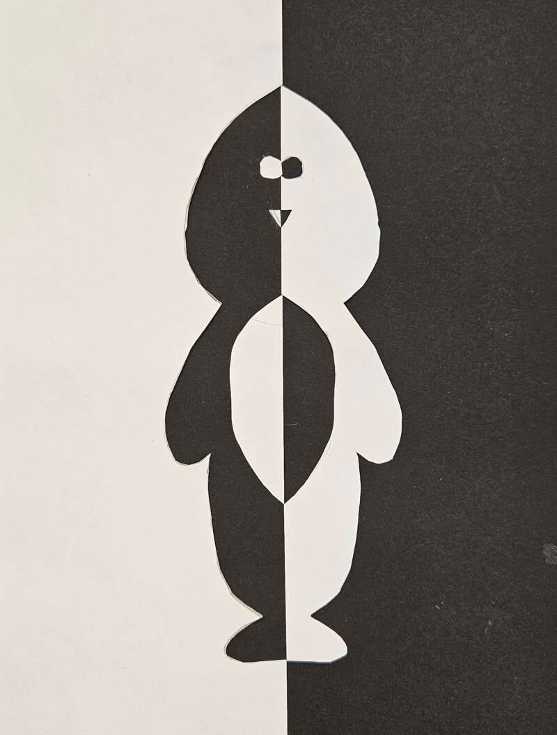In deze knutsel maak je een pinguïn van zwart en wit papier. De spiegeltekening ontstaat door te knippen en te plakken en zo ontstaat een perfect symmetrische pinguïn. Simpel, winterachtig en superleuk om te maken!