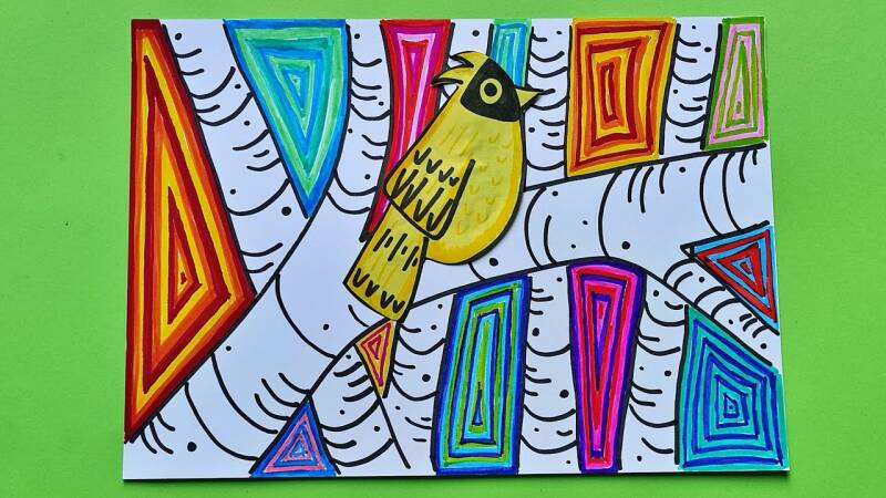 - Teken een diagonale of horizontale tak voor de vogel om op te zitten.