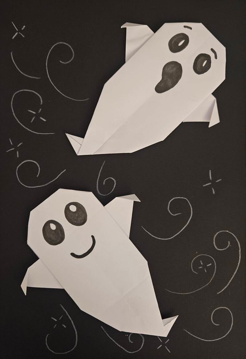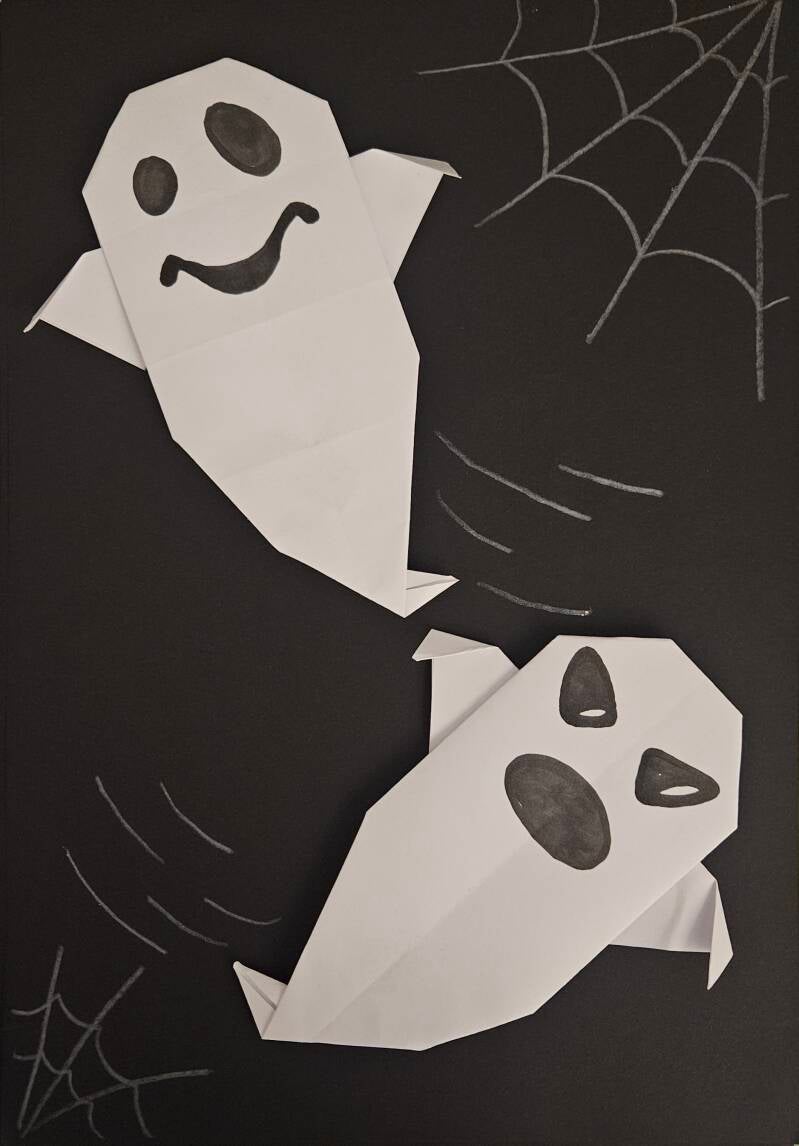 Vouw 2 spookjes. Volg hiervoor de instructies uit het filmpje.
