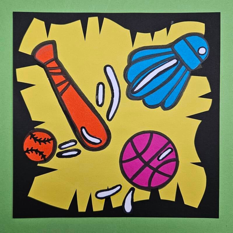 Met deze stappen maak je een kleurrijke sportknutsel die mooi op zwart papier afsteekt. Veel knutselplezier!