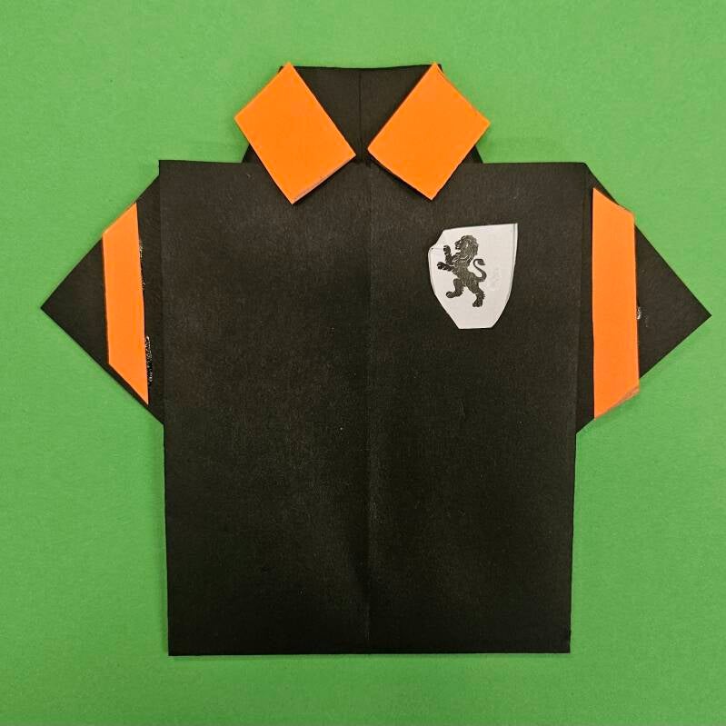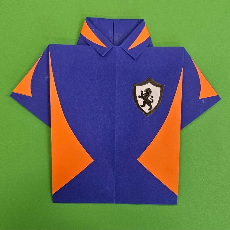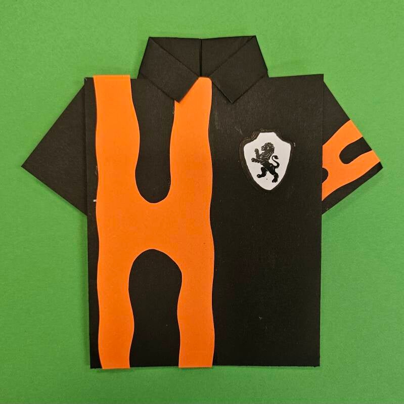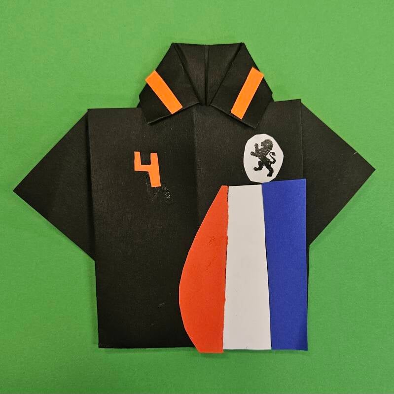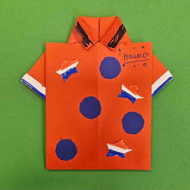Ontwerp je tenue: Nu begint het leuke gedeelte! Gebruik je tekenspullen om het gevouwen shirt te decoreren. Denk aan de kleuren van de Nederlandse vlag, iconische symbolen, of misschien wel een vernieuwende look die je graag zou zien op het veld. Het is jouw kans om een uniek en opvallend tenue te creëren.