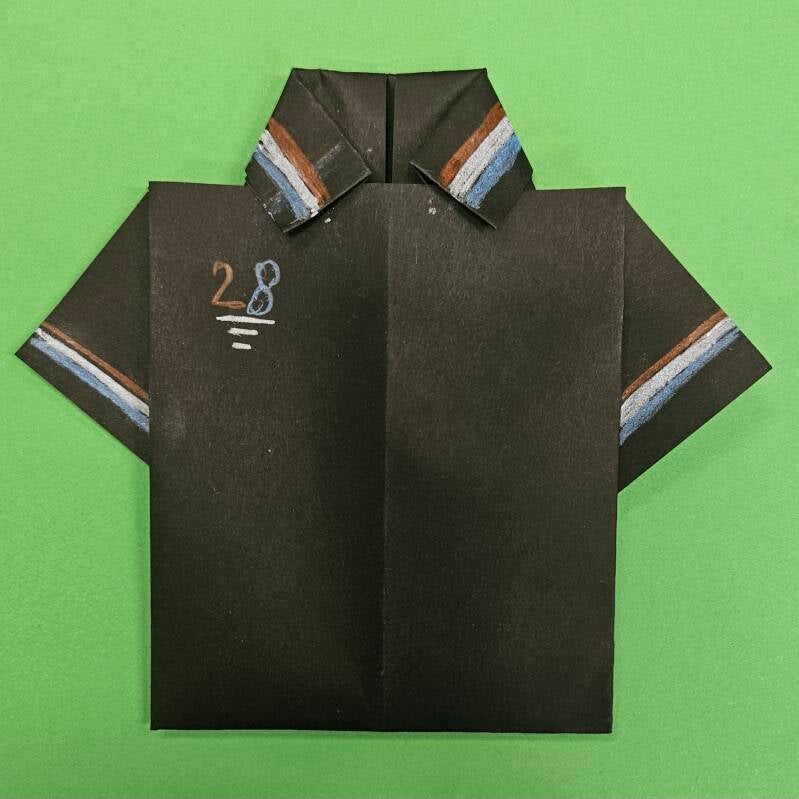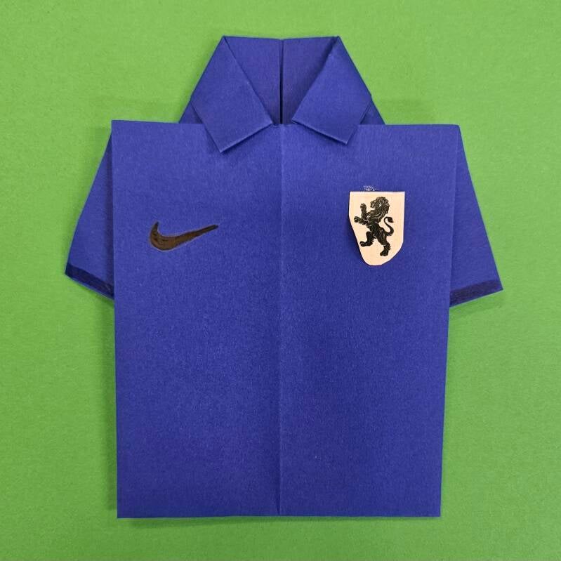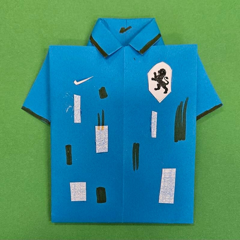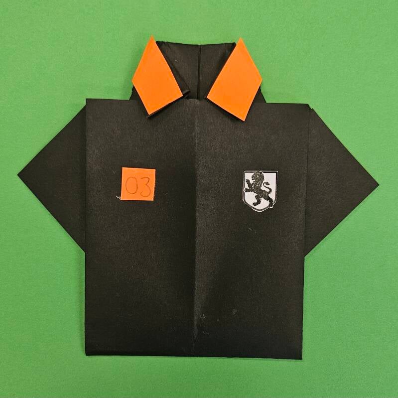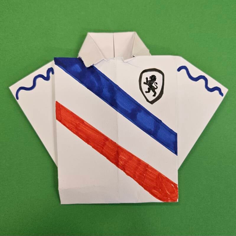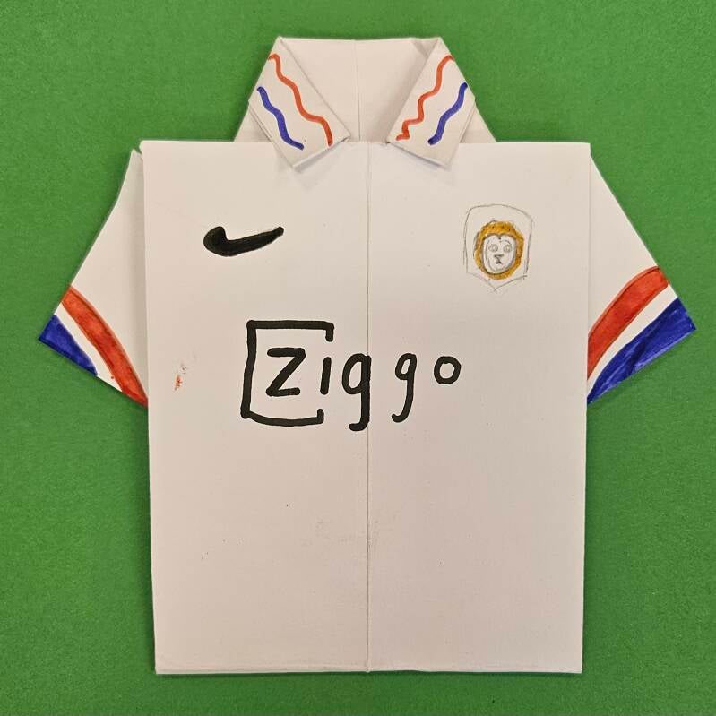 Vouw het shirt: Volg de instructies in het filmpje om je A4-papier te vouwen tot een voetbalshirt. Neem de tijd en zorg ervoor dat alle vouwen netjes zijn.