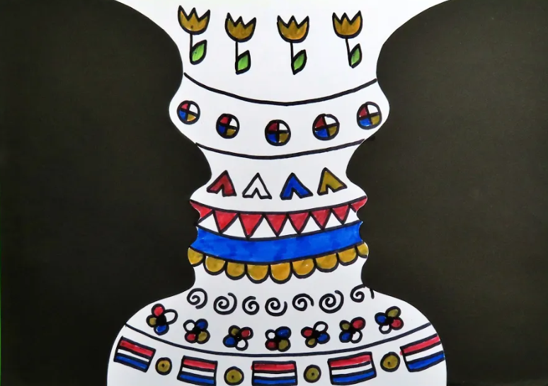 Leg de opdracht uit aan de leerlingen: Ze zullen een kunstwerk maken geïnspireerd op de Vaas van Rubin.