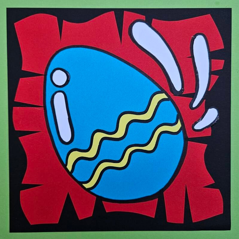 Daarna gaan de leerlingen zelf een kunstwerk maken in de stijl van Burton Morris, met Pasen als thema.