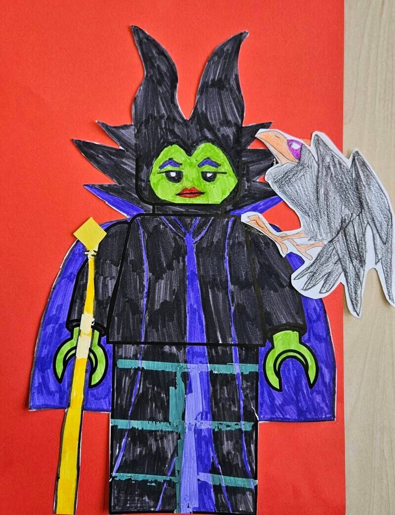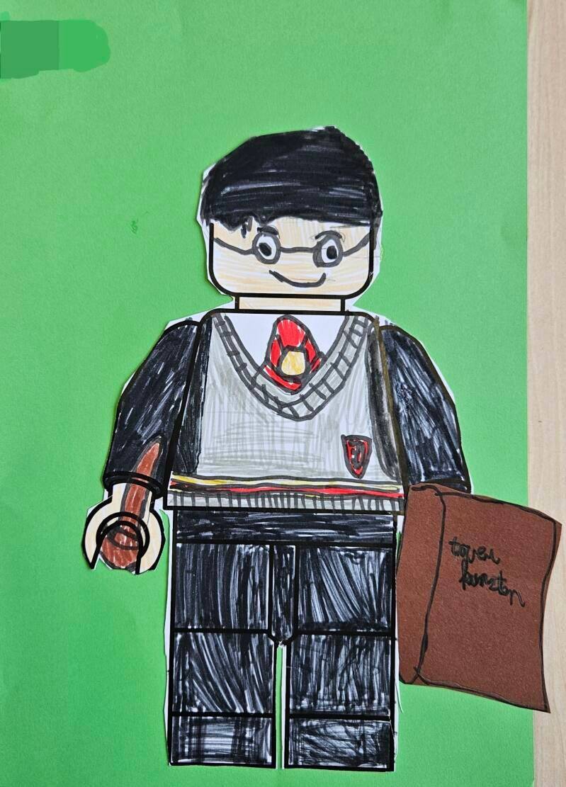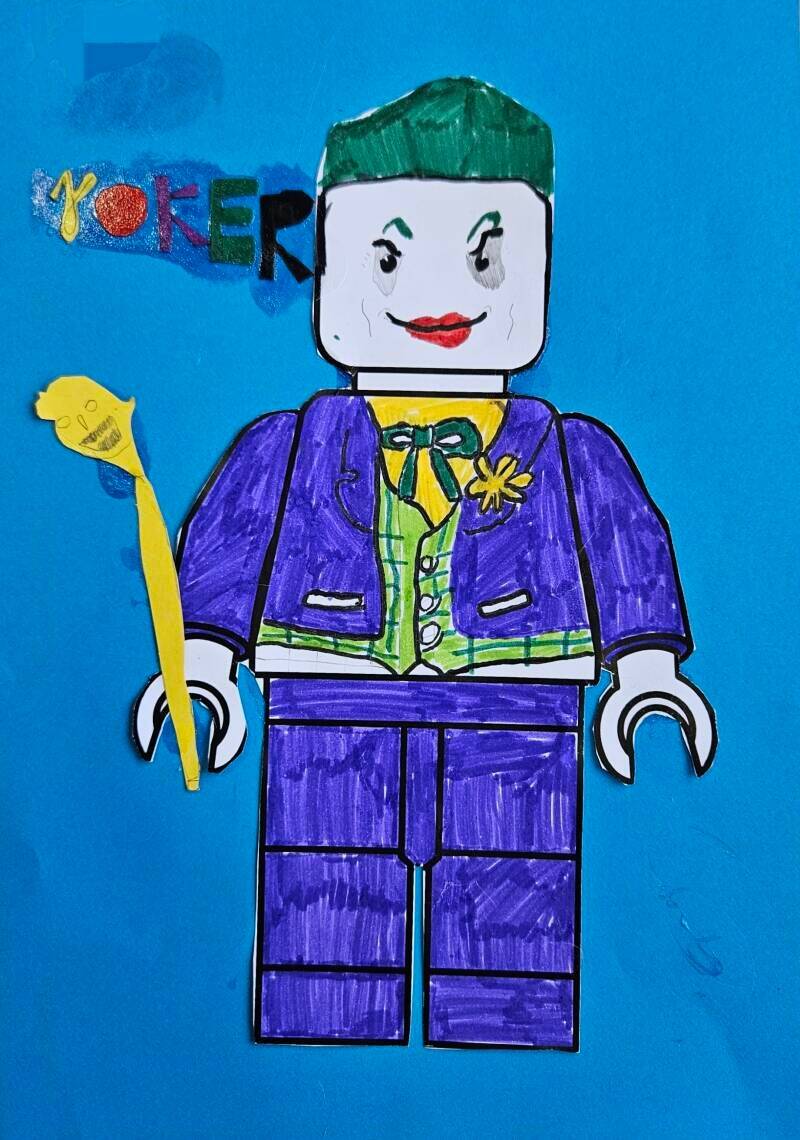 - Kleur je LEGO-poppetje in met stiften.